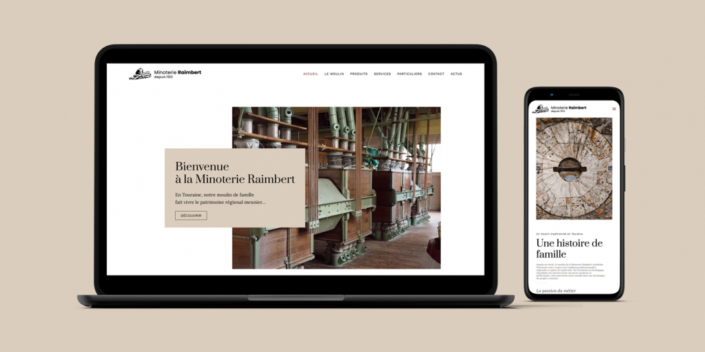 La Minoterie Raimbert ne fait pas que produire et vendre ce qu’elle produit. Elle crée bien d’autres richesses, immatérielles celles-ci. Elle participe de faire vivre des traditions, des savoir-faire, une culture régionale, à maintenir un lien social à travers la boulangerie artisanale qu’elle approvisionne chaque jour… Elle est importante pour le tissu local et capitale pour la préservation de nos savoir-faire français. Notre mission a été de bâtir l’architecture de marque et le discours de communication de cette minoterie traditionnelle afin de maintenir ce qui pour les fondateurs a tant d’importance : ce beau moulin de famille, au cœur de la Touraine.