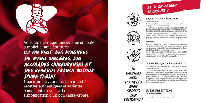 « Ici on veut des poignées de mains sincères, des accolades chaleureuses et des regards francs autour d’une table ». Ça, c’est dit et c’est fait. Voilà l’esprit des Cambusiers. Pour un chantier au long court, une fiesta entre copains, l’équipe vous propose du roboratif, du simple, de l’authentique et du bon marché de qualité. Les Cambusiers voulaient que ça se sache : ils sont un bon moyen pour, sans chichi, se faire une assiette de charcutaille, une tête de veau, une saucisse basque au piment d’Espelette accompagnées d’une grosse pomme de terre gros sel ! On nous a demandé de le faire savoir, alors on l’a fait !