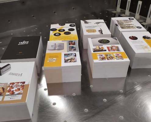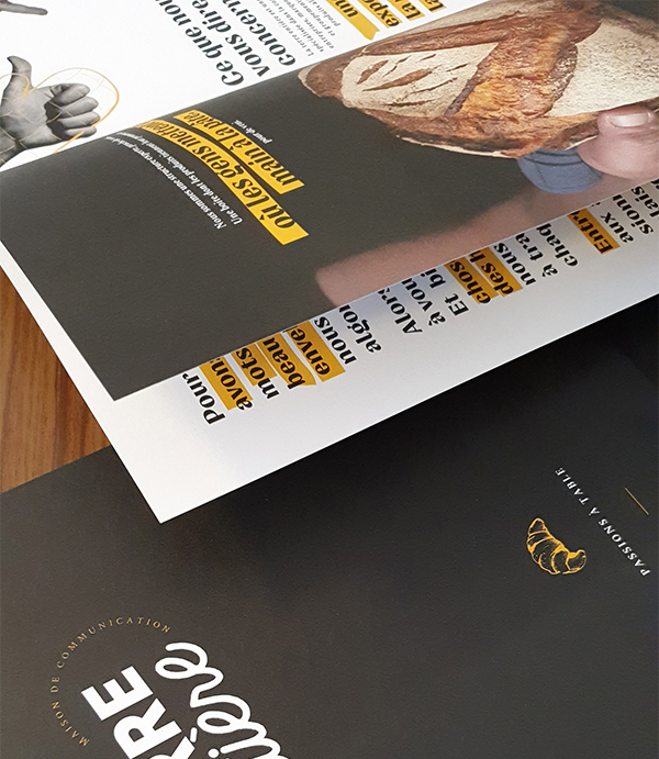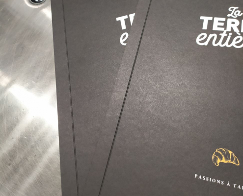 On a réellement l’impression d’être dans l’industrie du luxe, chez un grand chausseur par exemple. Ce n’est pas un sac Hermes pour autant notre brochure, mais pour nous, c’est tout comme. Et puis vient ensuite le moment ou on vous remet l’objet en mains. Ça sent bon l’encre d’imprimerie, le toucher est agréable et on se prend à imaginer comment celui qui recevra notre petit moment de bonheur réagira ? «  Tu crois qu’ils vont en dire quoi, Yann, Adrien, Benjamin, Arnaud, Manu, Serge… » ? « Du bien j’espère » !