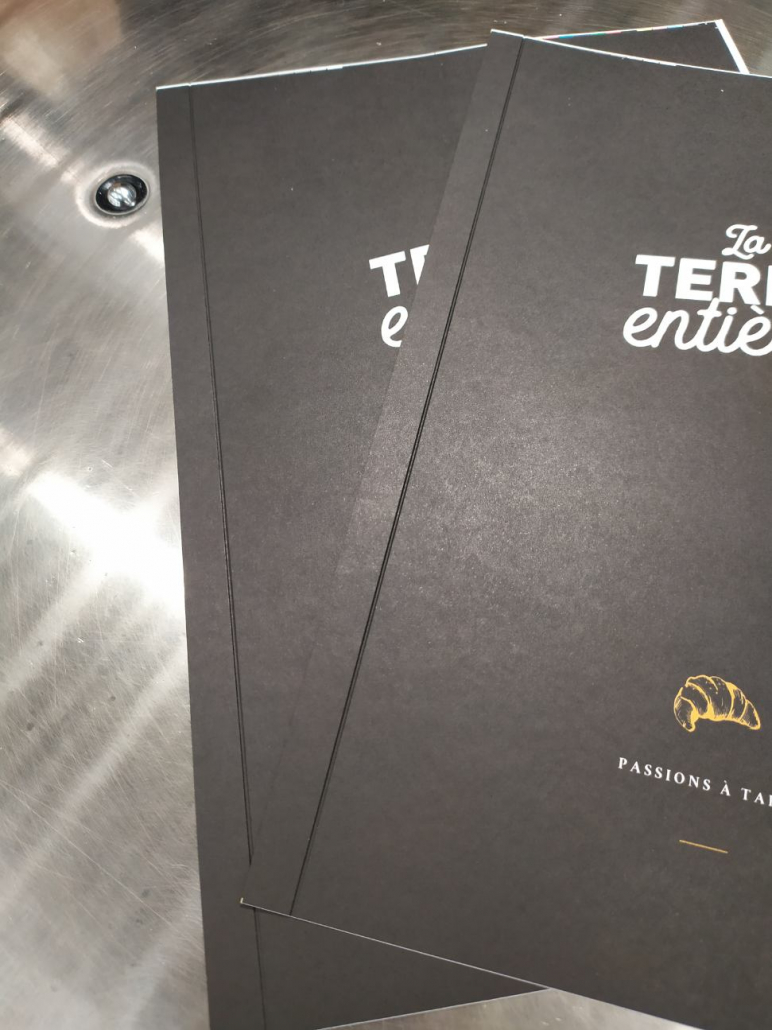 Alors on a fait venir Sabine, notre imprimeur, pour sélectionner un beau papier, sensuel au toucher et valorisant au mieux la création de Valentine un brin décalée ? La création, pas Valentine, quoique…